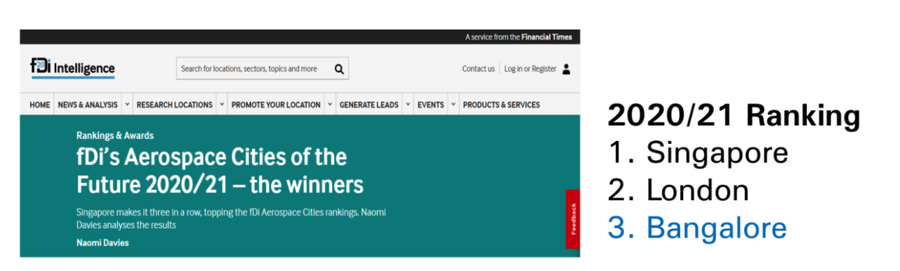 Bangalore the capital of India's southern Karnataka state, came third in fDi's 2020/21 ranking, up from fourth place in the previous study. An estimated total of more than 7000 aerospace FDI jobs were created in the city between 2015 and 2019, the highest out of all locations analysed. Notable investors include UK-based Rolls-Royce Holdings and Liebherr Aerospace, part of Switzerland-based Liebherr. In September 2018 , US based multinational Boeing announced plans to set up a $156m electronic manufacturing and avionic assembly facility in its Bangalore tech hub, creating 2600 jobs.
